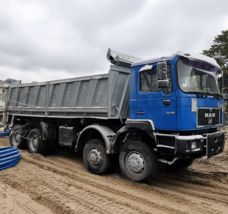 sprzęt o dużej pojemności, idealny do transportu kruszyw, ziemi, gruzu czy innych materiałów budowlanych. Dzięki czterem osiom, wywrotka zapewnia doskonałą nośność i stabilność, co pozwala na transportowanie dużych ilości materiałów na duże odległości.